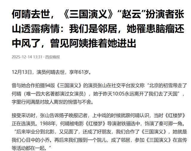 然而随着何晴的家属发布讣告,大家不得不接受现实,这位演技出色,角色出圈,美貌惊人的女演员真的离世了。
