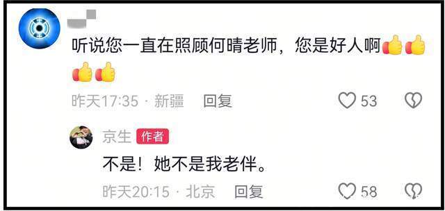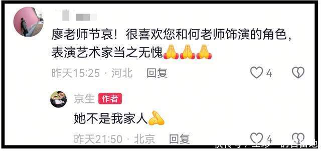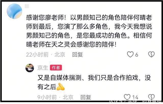 当何晴离世,很多网友涌入廖京生账号评论区留言安慰,对于此,廖京生无奈回应称何晴不是他的老伴,不是他的家人。