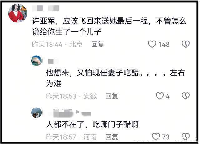 有网友说看在儿子的面子上,许亚军也应该去送何晴最后一程。